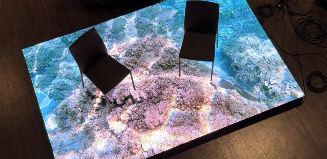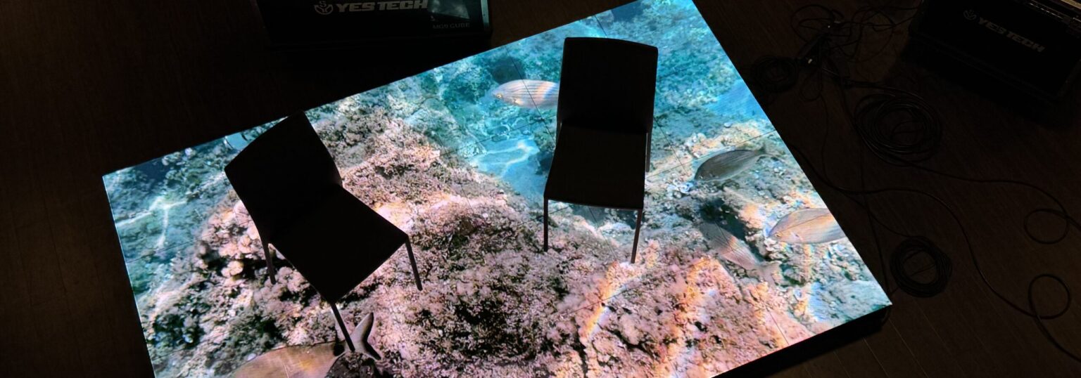 Tas nozīmē, ka vizuālais saturs var turpināties no sienas uz grīdu, radot vienotu digitālo vidi. Šāds risinājums bieži tiek izmantots lielos koncertos un televīzijas šovos, kur scenogrāfija kļūst par pilnībā digitālu telpu.